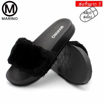 ราคาล่าสุด Marino รองเท้าลำลอง รองเท้าแตะลำลองขนเฟอร์ แฟชั่น No.A026 - สีดำ